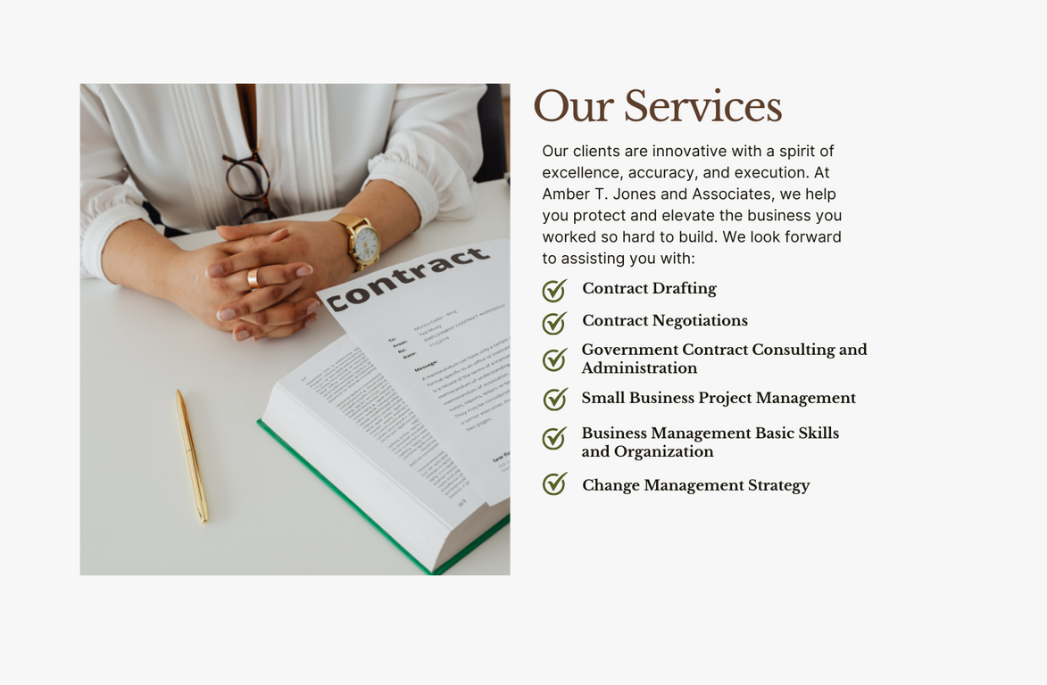 We are so thankful to work with Amber! As a small business that partners with other service- and product-based businesses, contracts are at the heart of our work. Knowing Amber reads our agreements through her legal lens lifts a huge burden off our shoulders. We depend on her vast legal knowledge and counsel in all we do. She is always personable and professional and willing to answer all of our questions!